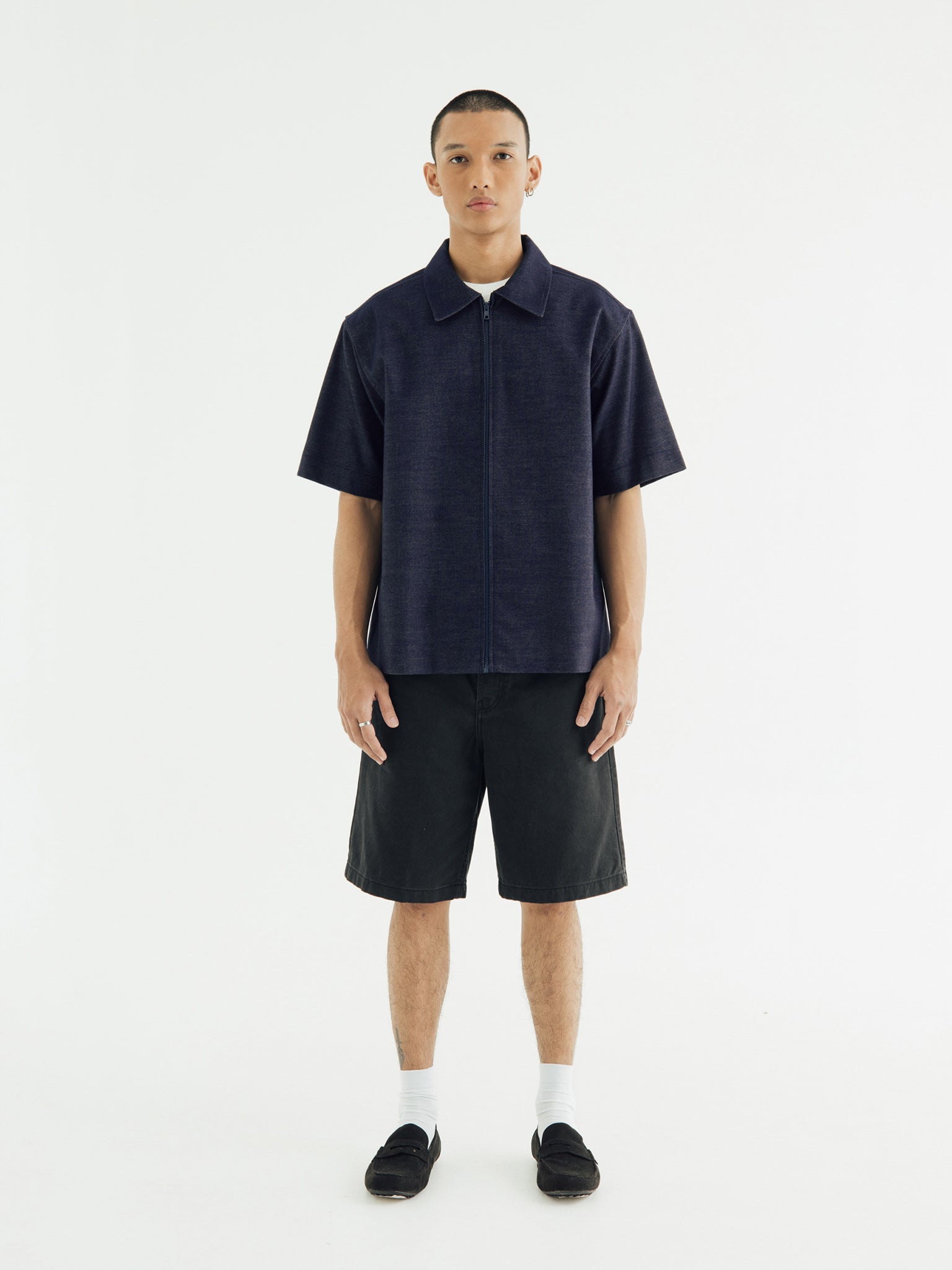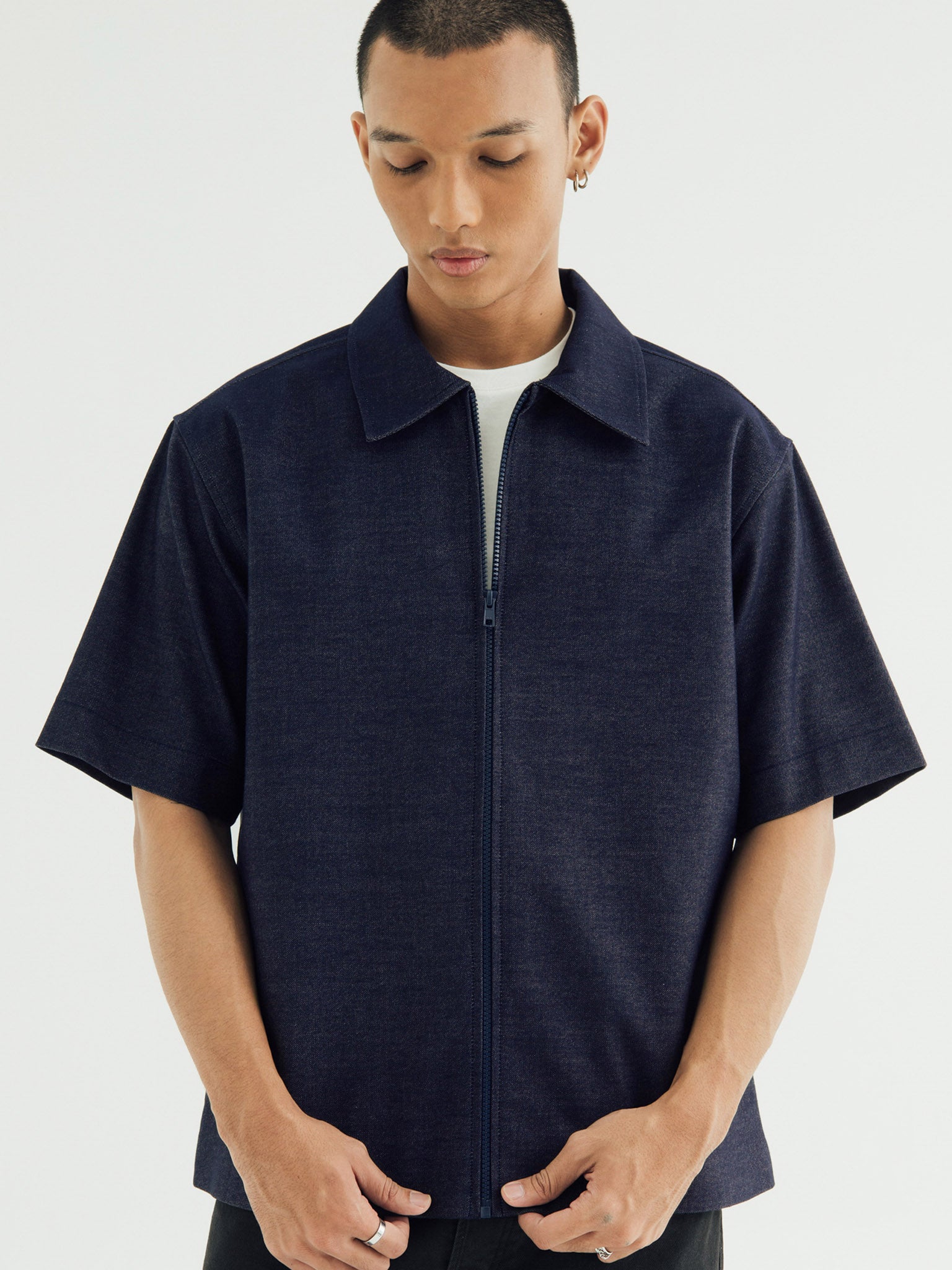 ZIPPER OVERSIZED SHIRT IN SOFT DENIM