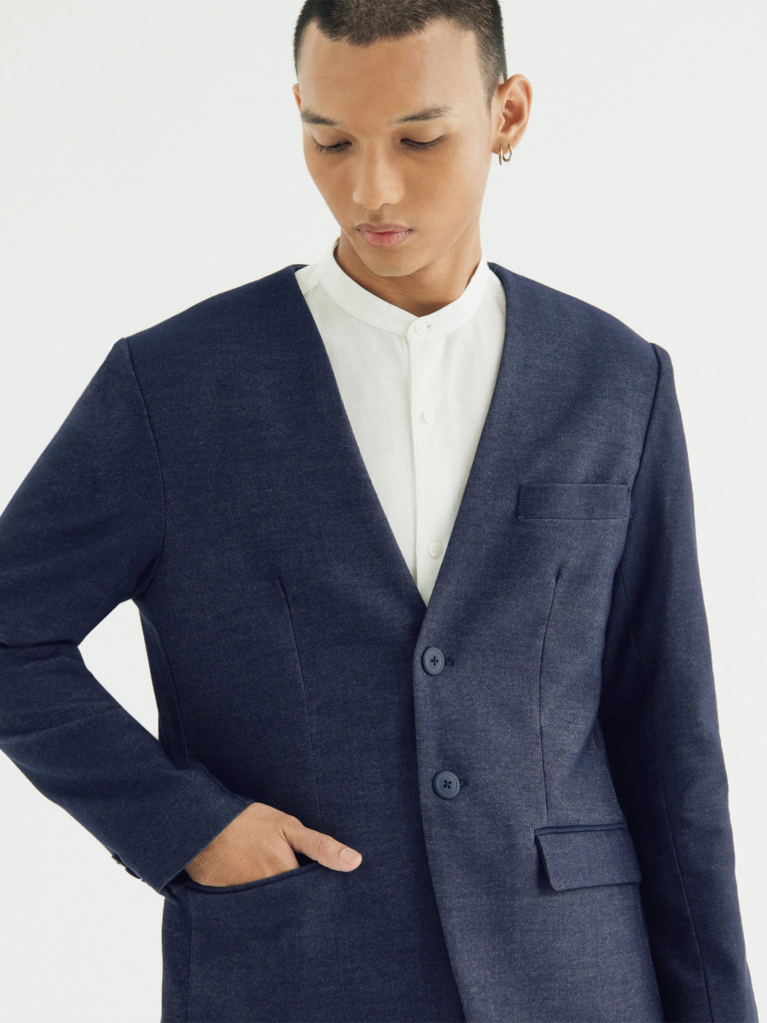 LAPELLES SLIM FIT BLAZER IN SOFT DENIM