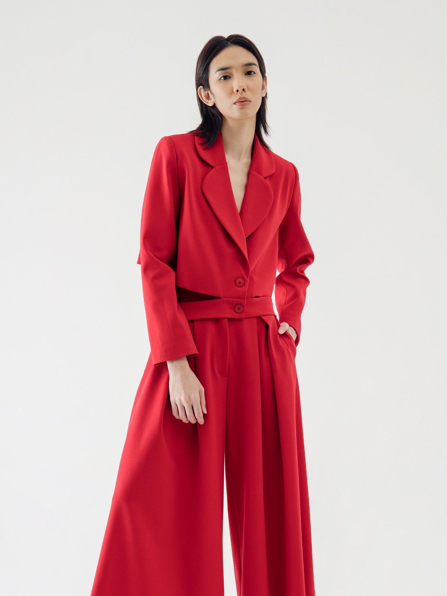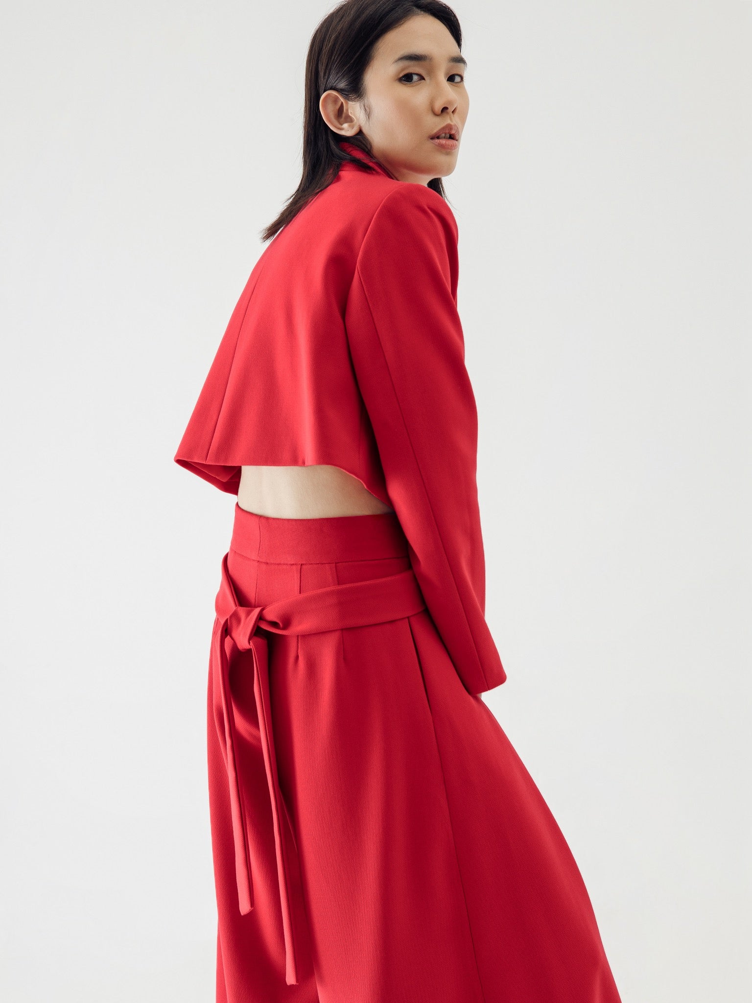 SIDIK JARI – TIED CROP BLAZER IN RED